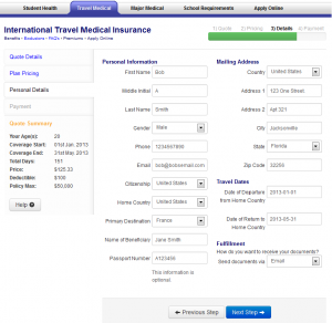 International Student Insurance Introduced a New Online Application AT new application step 3